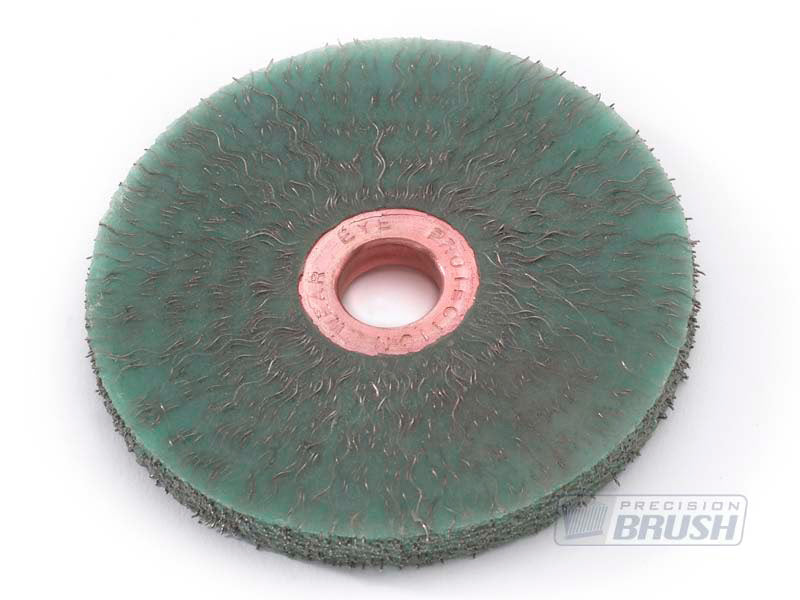 Diameter: 2" (50.8mm); Width: 1/4" (6mm); Wire: .006 Fine; Arbor Hole: 3/8" (10mm). Plastic Encapsulated Brush -Minimizes bristle spreading, controls cut depth and brist...