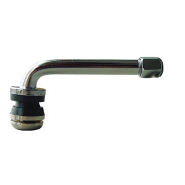 Alloy wheel valve with 90 degree bend. Lock nut, washer and outer grommet is installed from inside the wheel. Fits Rim Hole 11.3mm