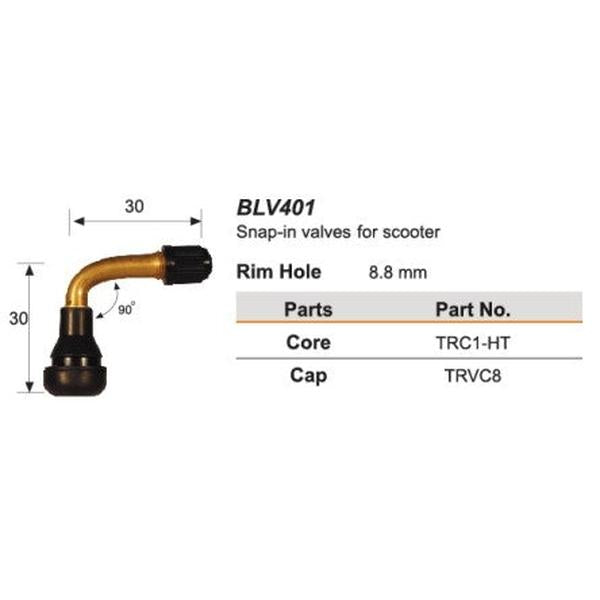 8.8Mm Rim Hole 90' Rubber Snap In T/L Valve