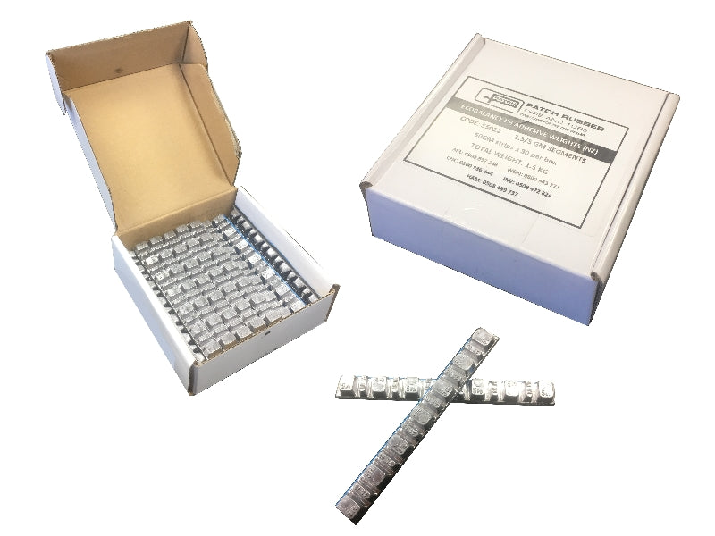 Lead based (PB) "Ecobalance" adhesive weight. 30 strips of 2.5 and 5 gm zinc plated segments packed in a cardboard box. Made with blue backed adhesive tape with a convenient pull off tab. Great value, no waste, proven in NZ conditions. Economical and eco-friendly.